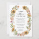 Invitación de Baby Shower a Wildflower Boho. Esta preciosa invitación a la ducha para bebés cuenta con una impresionante acuarela pintada a mano color rosa y polvorientas flores silvestres azules, hermosos girasoles amarillos y una vegetación ardiente que se ha acondicionado como un bonito ramo perfecto para los amantes de la magia boho / elegancia bohemia. Encontrar elementos coincidentes en la colección de Bodas de girasol moderno.