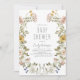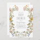 Celebra la llegada de un nuevo paquete de alegría con una hermosa ducha de bebé con temática de flores silvestres. Únete a nosotros por una tarde llena de amor y felicidad mientras honramos a los futuros padres. La invitación cuenta con un impresionante fondo blanco, acentuado por una variedad de flores silvestres vibrantes.