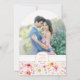Invite your loved ones to celebrate your love story with this dreamy wedding photo invitation, adorned with watercolor wildflowers in blush pinks, sage greens, golden yellows, and sunset oranges. A shimmering gold arch frames your wedding details with timeless elegance, while the back features your favorite photo — making your love the true centerpiece.