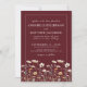 The background is a deep burgundy on both sides, with the text in elegant dark gray fonts. Handwritten script blends with modern serif typography for a clean, contemporary feel. The muted floral palette complements a variety of wedding styles, from rustic outdoor gatherings to chic metropolitan events.