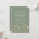 The background is a soft sage green on both sides, with the text in elegant dark gray fonts. Handwritten script blends with modern serif typography for a clean, contemporary feel. The muted floral palette complements a variety of wedding styles, from rustic outdoor gatherings to chic metropolitan events.