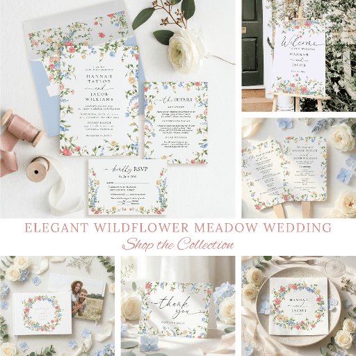 This elegant wildflower wedding invitation features a delicate watercolor floral border with soft pink, blue, and yellow blooms for a romantic garden-inspired look. The timeless typography and airy layout beautifully highlight your wedding details, making it perfect for spring weddings, summer ceremonies, rustic venues, garden celebrations, and botanical wedding themes. The back of the invitation includes a collage layout for engagement photos framed with coordinating wildflowers, along with a convenient QR code RSVP and wedding website so guests can easily respond and find more information about your special day.