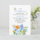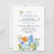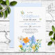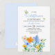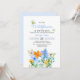 Dulce y veraniego "Pequeña flor silvestre está en camino" temática de las invitaciones a la ducha de bebé. Con bonitas flores de color azul, blanco, naranja y amarillo.