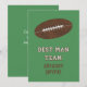 This best man card has a football on the front along with the words, "TEAM BEST MAN (NAME)." On the reverse side of the flat card are the words, "Can I add you to my team?" This is a fun football themed way to ask someone to be your best man. Copyright Henis House of Paper