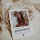 Looking for a sweet and meaningful way to ask your loved ones to be your baby's Godmothers? This modern, minimalist card is the perfect way to pop the question! Whether you're asking a family member or close friends, this template helps you create a heartfelt moment that they'll treasure forever, along with a photo of your little one.