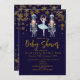Invitación Winter Baby Boy Shower Blue Gold Copos de nieve