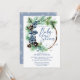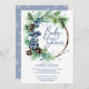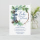 Invitación Winter baby shower snowy pines wreath dusty blue