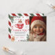 A warm winter-themed birthday thank you card featuring a red cocoa mug with whipped cream and cinnamon sticks, festive candy canes, snowflakes, pine greenery, and a holiday gift illustration. The design includes space for a personal photo, making it ideal for winter or Christmas birthday celebrations. Perfect for children’s seasonal parties and customizable with your message of gratitude.