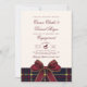 Invitación Winter Engagement party Christmas Plaid Red Bow