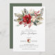 Esta elegante invitación a la ducha de novias para Navidades vacacionales cuenta con hermosas flores de Navidad con bayas, flores blancas y ramas de pino. La invitación es perfecta para celebrar la próxima novia durante la temporada navideña. El diseño general es festivo y refinado, y la invitación impresiona a los clientes.