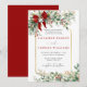 Invitación Winter Greenery Red Bow Bells Rustic Frame Wedding