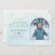 This blue winter onederland first birthday invite features icy blue sparkles, soft watercolor snowflakes and an arched frame that highlights your kid arch photo picture image. Ideal for an aqua winter wonderland 1st birthday or babys first birthday party announcement, it suits baby kid boy girl birthday celebrations with a cool snowy feel. Personalize the photo, rsvp and event details to create a one year milestone celebration invite to cherish. Personalize yours today.