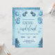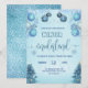 A winter oenderland birthday invitation for a year old birthday with blue color winter ornaments and frosty trees and blue glittered backside and snowflakes. Perfect for 1st baby boy birthday invitation.
