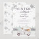 Esta encantadora invitación al primer cumpleaños de los bosques de tierra firme de invierno es perfecta para una fiesta de cumpleaños temática de invierno. El diseño está decorado con hermosos acuarelas y animales de bosque en un camión de granja rodeado de árboles montañosos y copos de nieve que el niño de un año y los huéspedes seguramente apreciarán. Personalice todos los detalles para su fiesta.