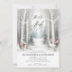 Una elegante y dulce invitación a la ducha de bebé de invierno con una escena de invierno con un bosque blanco y animales de bosque, conejos blancos, pintados con acuarela. Una temática de invierno perfecta para dar paso a la llegada de tu preciosa pequeña. Elegante caligrafía moderna resume el diseño dulce, perfecto para una ducha de bebé de invierno para futuros padres que aman la temática invernal del maravilloso terreno, la temática de los animales de bosque, la temática encantada del bosque y el ilustracion acuático y que están celebrando una celebración en los meses de invierno de noviembre, diciembre o enero.