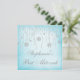 En esta verde azulada invitación al invierno de Bat Mitzvah se presentan elegantes ilustraciones de joyas de diamantes y copos de nieve. Elegante y formal — perfecto para un fiesta Bat Mitzvah de invierno! Los diseños son ilustraciones impresos planos/gráficos - NO VERDADEROS EMBELLISHMENTOS DE DIAMANTES.