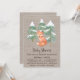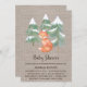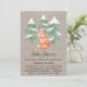 Esta tarjeta de invitación a la ducha para bebés de zorro de madera de invierno es perfecta para una ducha rústica para bebés. El diseño neutral de género incluye animales bonitos en una escena de invierno.
