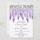 Las invitaciones a la boda de estilo moderno con estilo de escritura floral elegante con hilo acuático elegante con flores de glicinia suave y violeta con hojas verdes sobre un fondo blanco con la información sobre la invitación a la boda que aparece a continuación. Parte de una colección diseñada por © Evco Studio. Para coordinar la vista de elementos en www.zazzle.com/store/evcostudio