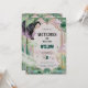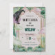 Magical witch musical birthday invitation with pink and green fantasy vibes. Editable Canva template, digital and personalized for a themed party.