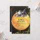 Celebre con un estilo mágico invitando a sus amigos brujos con una invitación a una fiesta de té con brujas de personalizable con un gorra de brujas encantador, tetera y teacups, una luna de oro y acentos purpurinas de oro girando. ¡Haz de tu fiesta de té una aventura encantadora!
