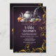 Celebre con un estilo mágico invitando a sus amigos brujos con una invitación a una fiesta de té con brujas de personalizable con un gorra encantador de brujas, tetera y teacups, y acentos purpurinas de oro girando. ¡Haz de tu fiesta de té una aventura encantadora!