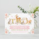Invitación Woodland Animals Pink Gold Floral Segundo cumpleañ