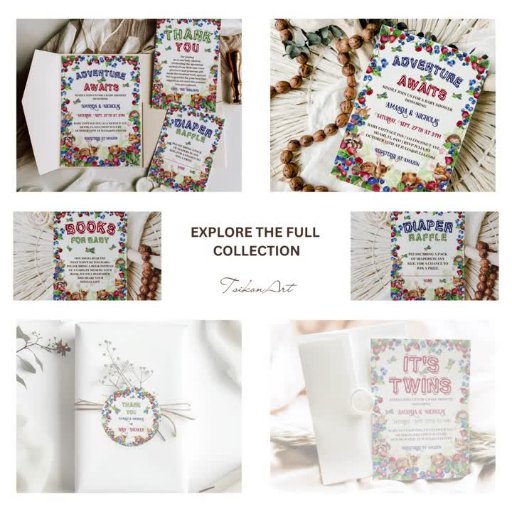 ¡Animales de la tierra de los bosques aventurados en un hermoso país de bayas salvajes! Los amigos de los bosques, como los osos, los ciervos, el mapache, el zorro, el conejo y el erizo, exploran una corona de fresas, arándanos y botánicos florales. Esta encantadora invitación al boho acuático es perfecta para duchas infantiles en primavera o verano sin distinción de género.
