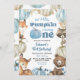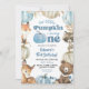 Invitación Woodland Blue Boho Bompkin Boy 1er cumpleaños