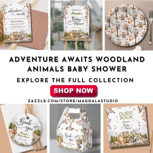 Adventure Awaits Woodland Animals Baby ShowerDiseñado por Magdaline Annie Martin Oming