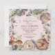 Rústicos animales de bosque dulce que duermen en el suelo del bosque entre el follaje, las setas y las agujas de pino. Una chica con temática de los bosques con una ducha de agua color rosa invitación para primavera, verano o otoño.