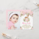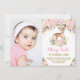 Invitación Woodland Deer 1er cumpleaños Pink Gold Pastel Flor