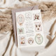 Invitación a una ducha de bebé en un bosque de bosques dulces con animales de la selva acuarela —conejito, oso, búho, zorro, mapache, erizo y ciervo— enmarcada con arcos y bordes de vieiras en suaves tonos neutros.