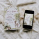 If you looking for an elegant unique and easy customizable woodland baby girl shower invitation this is perfect for you. As you see it features a greenery forest deer frame. That features a hand drawn watercolor two deer and trees with pink flowers in forest wild. All on white clean background. Very easy to customize and use. So grab it and male your invites very engaged.