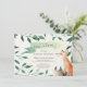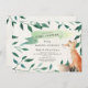 La invitación a la ducha de bebé Fox enmarcada con una hermosa vid verde para una ducha de bebé neutra.