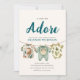 Celebrate the upcoming arrival of a baby boy with this charming "A Boy to Adore" baby shower invitation. Featuring adorable watercolor illustrations of woodland creatures and baby clothes hanging on a line, this invitation sets a sweet and whimsical tone for your celebration. The warm, earthy color palette with hints of sage green and cream creates a cozy and inviting feel. Perfect for a nature-themed or woodland baby shower, this invitation is sure to delight your guests. Include all the essential details for your special event, making it easy for everyone to join in the joy.