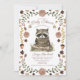 Welcome guests to a woodland baby shower with this sweet watercolor raccoon, nestled within a delicate frame of florals, acorns, and greenery. Painted in soft earthy tones, this rustic invitation captures the charm of this forest creature and brings a sense of cozy storybook magic to your celebration. A gentle blend of woodland whimsy and forestcore style — perfect for a gender-neutral baby shower inspired by nature and warmth.