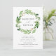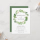 Elegantes invitaciones botánicas para bodas con nombres rodeados por una corona de color acuático en tonos de primavera y verde musgo. Personalice la invitación a bodas de boho con los detalles de su boda a continuación. La moderna invitación botánica a las bodas es perfecta para bodas de primavera y verano.