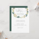Las hojas de color verde y dorado de las acuarelas rústicas fueron invitaciones de boda con flores blancas con texto elegante de caligrafía mezclado con un tipo de letra moderno. La plantilla es fácil de personalizar con su propia información. La parte trasera de la tarjeta es de color verde oscuro que coincide con las hojas de la corona.