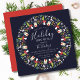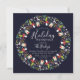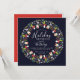 Este diseño de vacaciones de moda cuenta con una elegante corona floral de color agua en un fondo azul marino. Dentro de la corona se agrega tu información personalizada para las invitaciones de fiesta de tus Navidades. Simplemente edite el texto en los cuadros de texto proporcionados. navidades, feriados, fiestas, flores, botánica, bosques, naturaleza, pájaros, candycanes, setas de casa, renos, nieve, copos de nieve. christmascena #brunch #christmasparty #fiesta #red #verde #blanco #azul marino