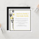 This reception-only wedding invitation features a modern, minimalist design with soft romantic accents. A clean white background is framed by a subtle double border in yellow and black, while a graceful botanical illustration rises along one side with slender black stems and delicate yellow leaves. Elegant script typography is paired with classic serif text, creating a refined and easy-to-read layout. The overall palette of yellow, black, and white feels polished and contemporary, making this invitation ideal for a stylish, reception-focused celebration. Personalize with your own information.