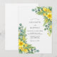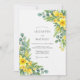 This design features a bright watercolor arrangement of sunny yellow daffodils and tulips nestled among lush greenery. Fresh eucalyptus sprigs and delicate fern fronds create a natural, airy atmosphere. The vibrant palette evokes the refreshing energy of a blooming meadow. Ideal for a seasonal outdoor event, the botanical artwork provides a clean and sophisticated aesthetic.
