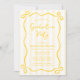 A trendy yellow graduation party invitation template, featuring a whimsical doodle bow frame and stripes. Easily add a photo to the back of the invitation. A fun design for a girl grad party!