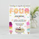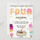 Endulza el gran día de tu pequeño con esta divertida invitación de cumpleaños "¡Grito, gritamos, todos gritamos por helado"! Con conos de helado coloridos, chispas y letras juguetonas, es perfecta para una celebración fresca y deliciosamente divertida.