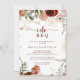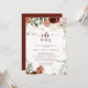 Esta invitación a la fiesta de compromiso floral dorada "I Do" BBQ es perfecta para una simple fiesta de compromiso, cena de ensayo, ducha de parejas, después de un fiesta o cualquier evento de boda. El diseño se compone de marsala pintada a mano, flores rosas, rubias, borgoñas y doradas con hojas verdes dispuestas en hermosas coronas.