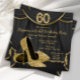 Elegantes zapatos de tacón alto con brillo negro y dorado para mujer entrando en sesenta invitaciones para la fiesta de cumpleaños 60 con hermosos zapatos de tacón alto con brillo dorado sobre un fondo de cortina negra y dorada. Esta elegante invitación de cumpleaños negra y dorada se personaliza fácilmente para su fiesta o evento agregando los detalles de su evento, estilo de fuente, tamaño y color de fuente, y redacción. Este es un diseño impreso sin brillo real.