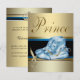 Invitación Zapatos Azules Corona de Príncipe Bebé de Oro Negr