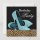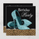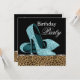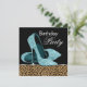 Elegante invitación de cumpleaños con zapatos de tacón alto y estampado de leopardo en azul turquesa con brillo. Esta hermosa plantilla de invitación de cumpleaños con estampado de leopardo en azul turquesa se personaliza fácilmente para su evento simplemente eligiendo el botón "¡Personalízalo!" para comenzar a agregar los detalles del evento, el estilo de letra, el tamaño y color de la letra, y la redacción. Tenga en cuenta que todos los stickers, tarjetas y diseños de invitaciones que encontrará en Zazzle son gráficos impresos sin joyas reales, lazos, partes o piezas en relieve, gofradas o agregadas.