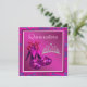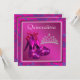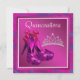 Plantilla de invitación Quinceañera elegante con zapatos de tacón alto rosa y tiara fucsia. Esta hermosa invitación de cumpleaños púrpura y fucsia se personaliza fácilmente para su evento simplemente eligiendo el botón "¡Personalízalo!" para comenzar a agregar los detalles del evento, el estilo de fuente, el tamaño y el color de la fuente, y la redacción. Tenga en cuenta que todos los stickers, tarjetas y diseños de invitaciones que encontrará en Zazzle son gráficos impresos sin joyas, lazos, partes o piezas elevadas, en relieve o añadidas.