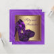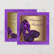 Invitaciones de cumpleaños de zapatos de tacón alto morados y dorados elegantes. Esta hermosa invitación de cumpleaños en morado y dorado se personaliza fácilmente para su evento añadiendo los detalles del evento, estilo de fuente, tamaño y color de la letra, y redacción. Tenga en cuenta que todos los stickers, tarjetas y diseños de invitaciones que encontrará en Zazzle son gráficos impresos sin joyas reales, lazos, relieves, estampados o piezas o partes añadidas.