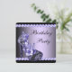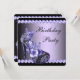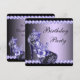 Elegantes zapatos de tacón alto negros y morados para mujer invitaciones para una fiesta de cumpleaños morada. Esta hermosa invitación de cumpleaños en negro y morado se personaliza fácilmente para su evento simplemente agregando los detalles del evento, el estilo de fuente, el tamaño y el color de la letra, y la redacción. Tenga en cuenta que todos los diseños de invitaciones que encontrará en Zazzle son gráficos impresos sin joyas reales, lazos, partes o piezas en relieve, en relieve o agregadas.